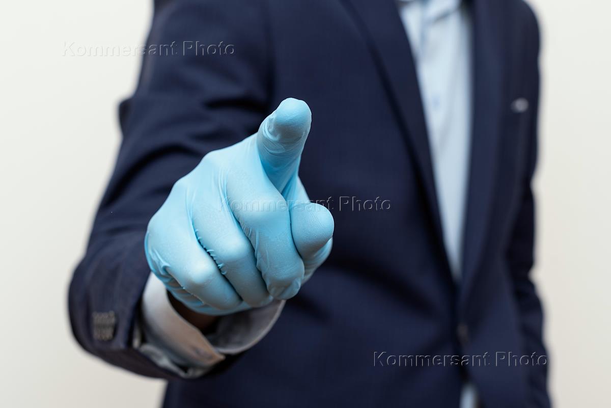 Жанровая фотография. Рука мужчины в медицинской перчатке.