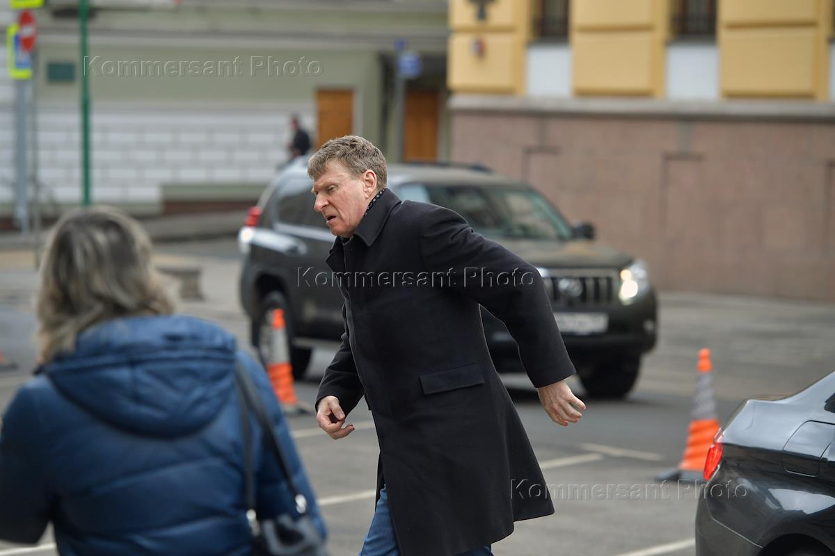 Виды Москвы во время карантина коронавируса COVID-19. Прибытие членов Совета Федерации (СФ) России на внеочередное пленарное заседание. Представитель в СФ России от исполнительного органа государственной власти Ярославской области Игорь Каграмян перед началом заседания.