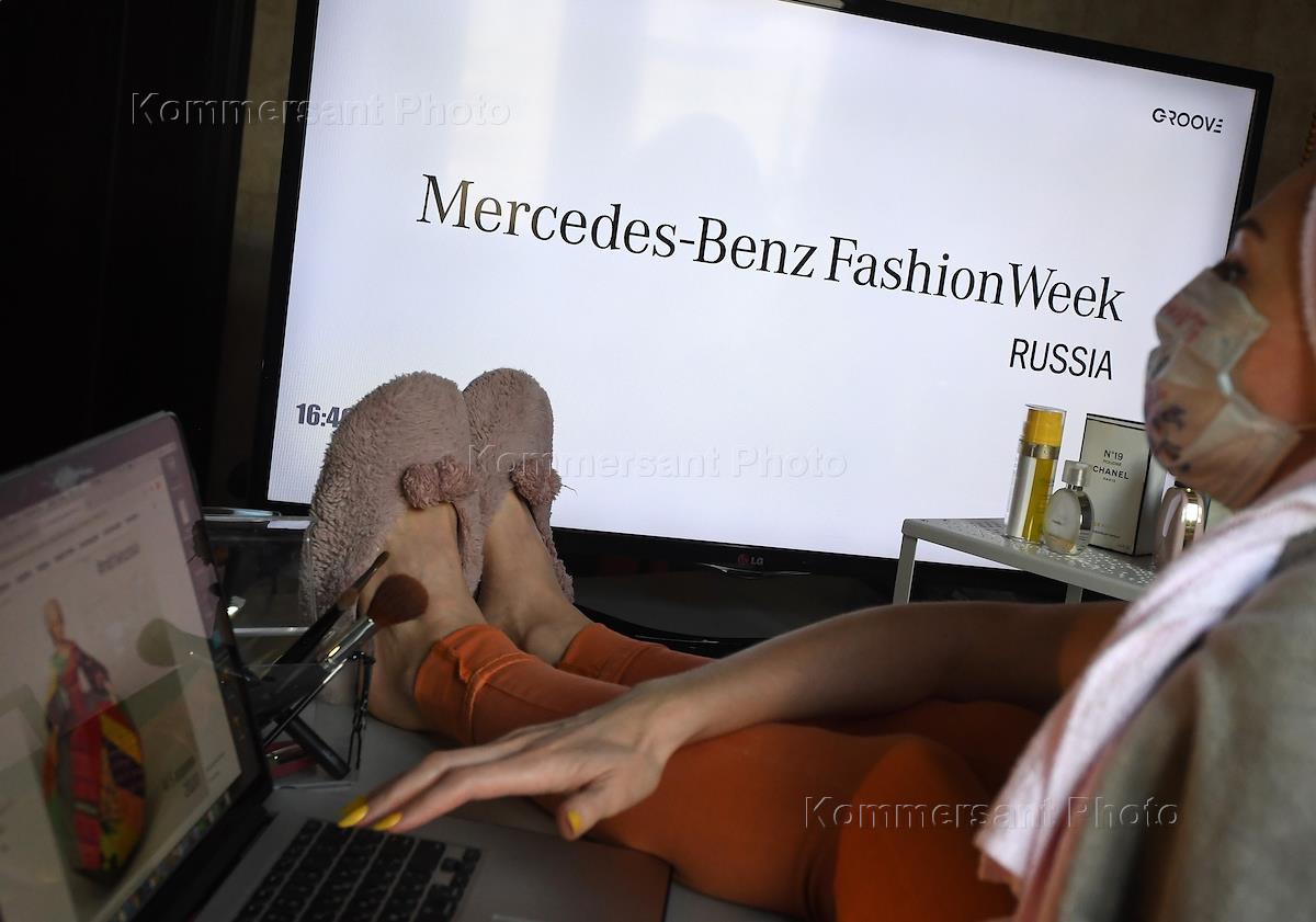 Неделя моды Mercedes-Benz Fashion Week Russia в связи с пандемией коронавируса COVID-19 прошла полностью в digital-формате. Онлайн-трансляция видеопрезентаций российских брендов. Жанровая фотография.