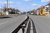 Виды города Люберцы во время карантина из-за опасности распространения коронавирусной инфекции COVID-19. Жанровая фотография. Октябрьский проспект. Мало машин.