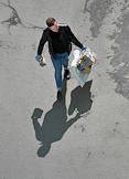 Москва во время режима самоизоляции из-за опасности распространения коронавирусной инфекции COVID-19. Жанровая фотография. Курьер онлайн-магазина Ozon.