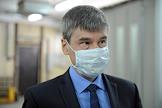 Пресс-тур Правительства Новосибирской области на промышленный ускоритель для стерилизации медицинских изделий и обработки пищевых продуктов в институте ядерной физики (ИЯФ) имени Г.И.Будкера Сибирского отделения Российской академии наук. Министр науки и инновационной политики Новосибирской области Алексей Васильев в медицинской маске во время пресс-тура.