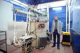 Пресс-тур правительства Новосибирской области на промышленный ускоритель для стерилизации медицинских изделий и обработки пищевых продуктов в Институте ядерной физики (ИЯФ) имени Г.И.Будкера Сибирского отделения Российской академии наук (РАН). Руководитель Центра радиационных технологий ИЯФ имени Г.И.Будкера Сибирского отделения РАН Александр Брязгин рядом с промышленным ускорителем для стериализации медицинских изделий и обработки пищевых продуктов.