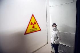 Жанровая фотография. Вход в помещение с радиационной опасностью. Табличка с надписью "Радиационная опасность".жа