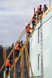Moscow during self-isolation regime caused by the danger of the coronavirus COVID-19 spread. Construction of the mobile infectious diseases hospital complex in New Moscow as part of the measures to fight coronavirus. Campaign posters on the construction site reading: "Builders! Every minute counts!", "Let's bury the virus with the crown!", "Tired and gave up? Give way to real fighters!"