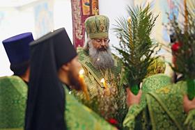 Богослужение в Свято-троицком кафедральном соборе. Митрополит Кирилл во время богослужения.