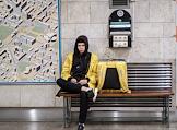 Новосибирск во время режима самоизоляции из-за опасности распространения коронавирусной инфекции COVID-19. Жанровая фотография. Молодой человек в медицинской маске в вестибюле станции метро.