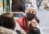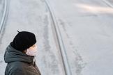 Новосибирск во время режима карантина из-за опасности распространения коронавирусной инфекции COVID-19. Жанровая фотография. Прохожие в медицинских масках.