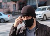 Новосибирск во время режима самоизоляции из-за опасности распространения коронавирусной инфекции COVID-19. Жанровая фотография. Молодой человек в медицинской маске идет по улице, разговаривая по мобильному телефону.