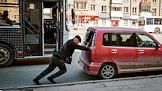 Новосибирск во время режима карантина из-за опасности распространения коронавирусной инфекции COVID-19. Жанровая фотография. Мужчина толкает автомобиль.