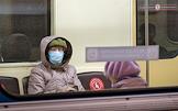 Новосибирск во время режима карантина из-за опасности распространения коронавирусной инфекции COVID-19. Жанровая фотография. Пассажирка в медицинской маске в вагоне поезда Новосибирского метрополитена.