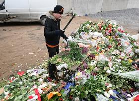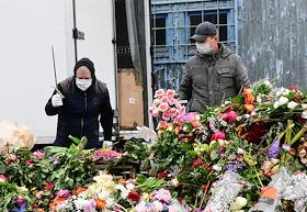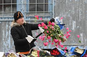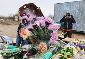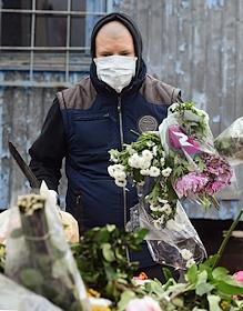 Consequences of the self-isolation regime caused by the danger of the coronavirus COVID-19 spread. Flower shops depose of flowers that have wilted due to the quarantine and self-isolation.