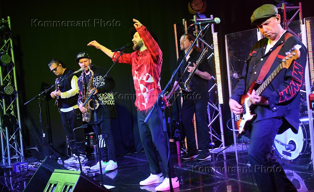 Режим самоизоляции из-за опасности распространения коронавирусной инфекцией COVID-19. Акция #МыВместе. Съемка благотворительного онлайн-концерта группы Uma2rman в студии. Солист группы Владимир Кристовский (третий справа) во время концерта.