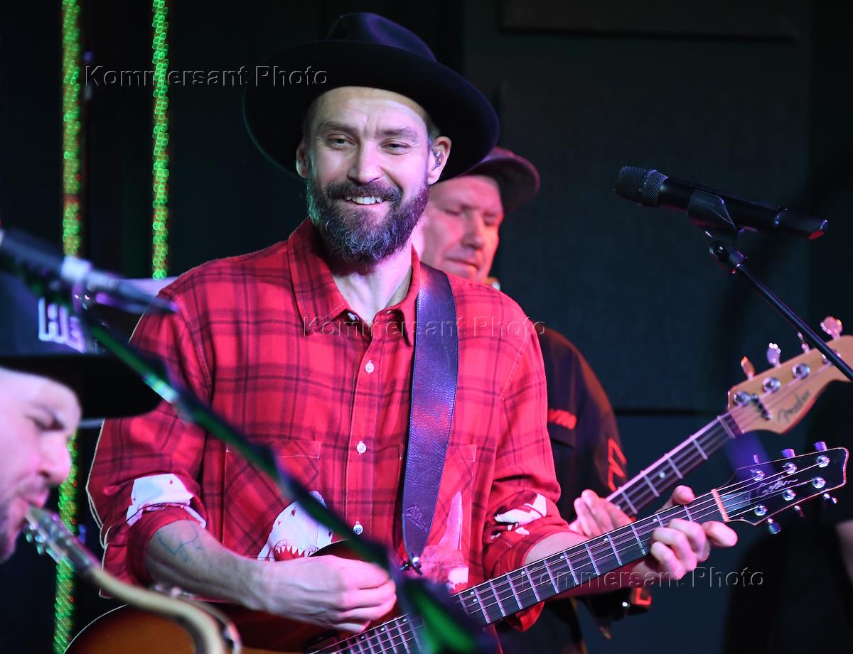 Режим самоизоляции из-за опасности распространения коронавирусной инфекцией COVID-19. Акция #МыВместе. Съемка благотворительного онлайн-концерта группы Uma2rman в студии. Солист группы Владимир Кристовский (справа) во время концерта.