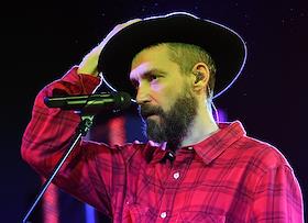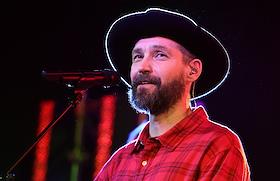 Self-isolation regime caused by the danger of the coronavirus COVID-19 spread. #WeAReTogether event. Filming of an online charity concert by Uma2rman band in the studio. Frontman of the band Vladimir Kristovsky performs during the concert.