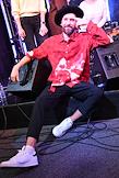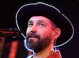 Self-isolation regime caused by the danger of the coronavirus COVID-19 spread. #WeAReTogether event. Photo shoot of an online charity concert by Uma2rman band in the studio. Frontman of the band Vladimir Kristovsky is seen during the concert.