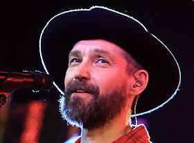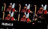 Self-isolation regime caused by the danger of the coronavirus COVID-19 spread. #WeAReTogether event. Filming of an online charity concert by Uma2rman band in the studio. Frontman of the band Vladimir Kristovsky (on screen) performs during the concert.