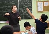 Средняя общеобразовательная школа № 2 г. Белоусово Жуковского района Калужской области. Преподаватель русского языка и литературы Валентина Гинзбург во время занятий.