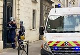 Жанровая съемка. Виды Парижа во время карантина из-за опасности распространения коронавирусной инфекции COVID-19. Сотрудники медицинской службы во время окоазания помощи прохожим города.