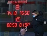 Москва во время режима самоизоляции из-за угрозы распространения коронавирусной инфекции COVID-19. Жанровая фотография. Женщина в медицинской маске проходит мимо информационного табло пункта обмена валюты с курсами доллара и евро.