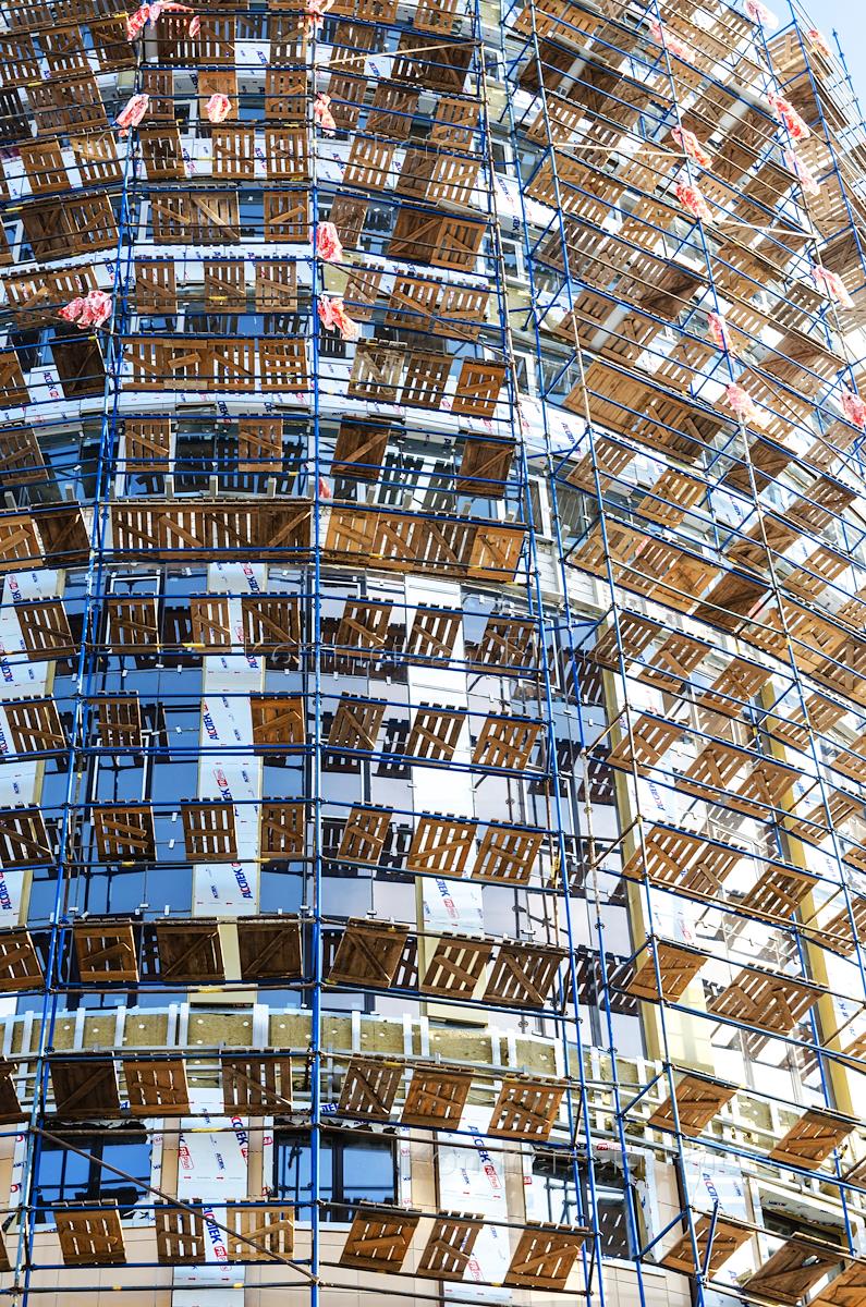 Виды Воронежа. Жанровая фотография. Строительство бизнес-центра. Здание в строительных лесах.
