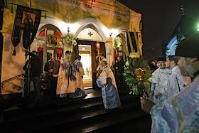 Празднование православной Пасхи во Всеволжске во время эпидемии коронавирусной инфекции COVID-19. Пасхальная служба в храме Спаса Нерукотворного Образа на Дороге жизни. Крестный ход.