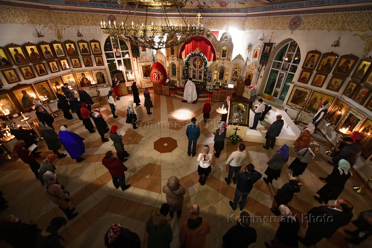 Празднование православной Пасхи во Всеволжске во время эпидемии коронавирусной инфекции COVID-19. Пасхальная служба в храме Спаса Нерукотворного Образа на Дороге жизни.
