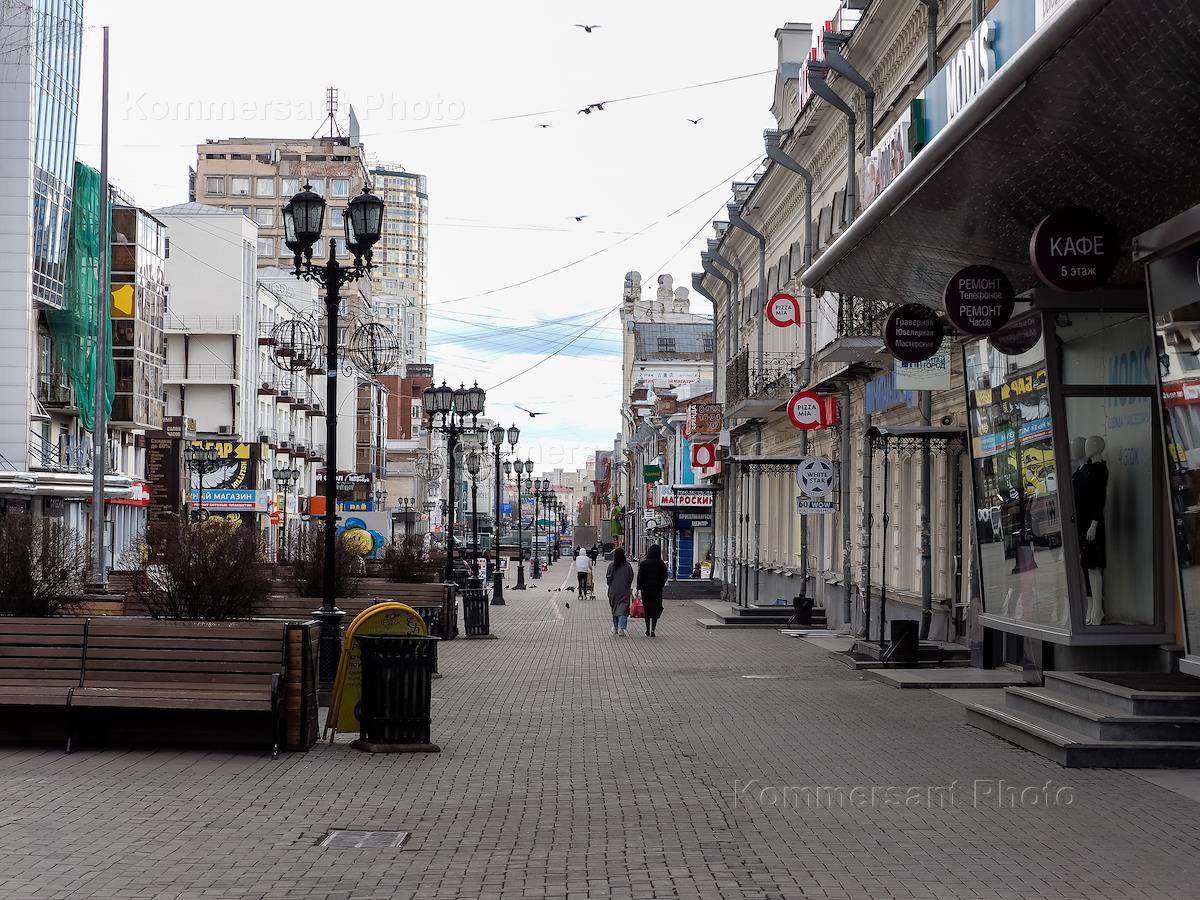 Виды Екатеринбурга во время режима самоизоляции из-за опасности распространения коронавирусной инфекции COVID-19. Жанровая фотография. Пешеходная улица Вайнера.