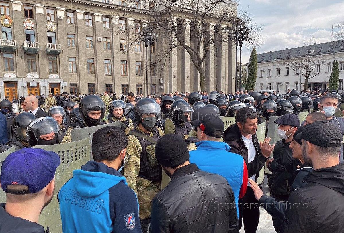 Владикавказ во время режима самоизоляции из-за опасности распространения коронавирусной инфекции COVID-19.Участники несанкционированного митинга против режима самоизоляции на площади Свободы.