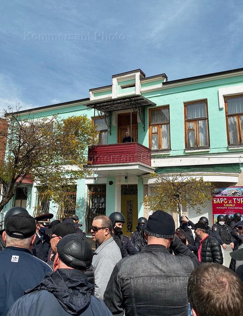 Владикавказ во время режима самоизоляции из-за опасности распространения коронавирусной инфекции COVID-19.Участники несанкционированного митинга против режима самоизоляции на площади Свободы.