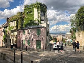 Виды Парижа во время режима самоизоляции из-за опасности распространения коронавирусной инфекции COVID-19. Жанровая фотография. Туристы на Монмартре.