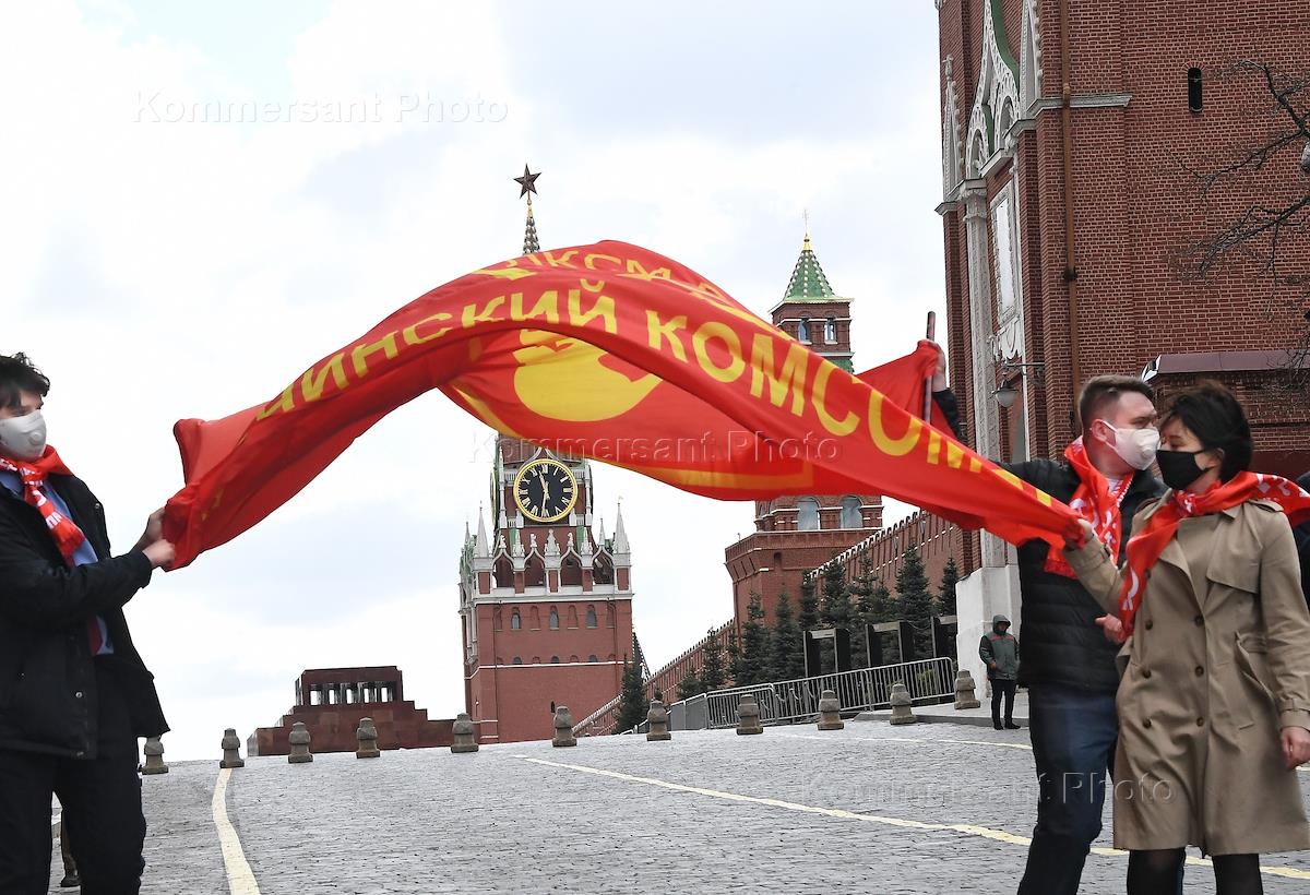 Москва во время режима самоизоляции из-за опасности распространения коронавирусной инфекции COVID-19. Акция Коммунистической партии России (КПРФ), посвященная 150-летию со дня рождения вождя революции Владимира Ленина, на Красной площади.