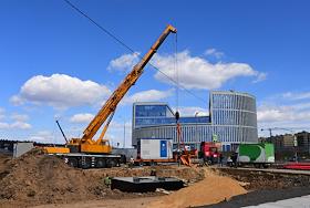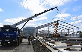 Preventive measures against the spread of coronavirus COVID-19. Genre photo. Builders construct new hospital buildings for confirmed COVID-19 patients in Kommunarka village in New Moscow.rogress (1)]