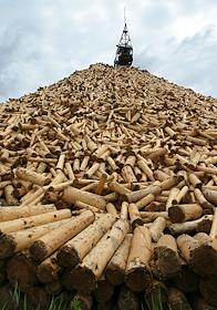 Балахнинский бумажный комбинат. Кучевое хранилище для балансовой древесины.