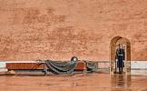 Москва во время режима самоизоляции из-за опасности распространения коронавирусной инфекцией COVID-19. Жанровая фотография. Мемориал "Могила Неизвестного солдата" у кремлевской стены в Александровском саду. Почетный караул у вечного огня.
