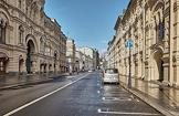 Москва во время режима самоизоляции из-за опасности распространения коронавирусной инфекцией COVID-19. Жанровая фотография. Безлюдный Ветошный переулок.
