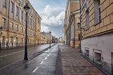 Москва во время режима самоизоляции из-за опасности распространения коронавирусной инфекцией COVID-19. Жанровая фотография. Пустынный переулок в центре города.