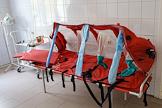 Новосибирск во время режима карантина из-за опасности распространения коронавирусной инфекции COVID-19. Жанровая фотография. Работа Ленинской подстанции станции скорой медицинской помощи. Носилки для переноски больного в кабинете подстанции.