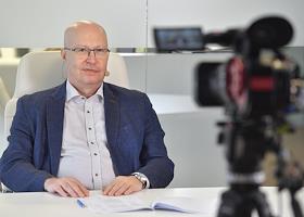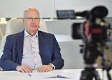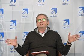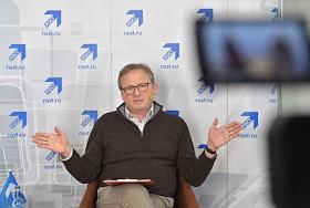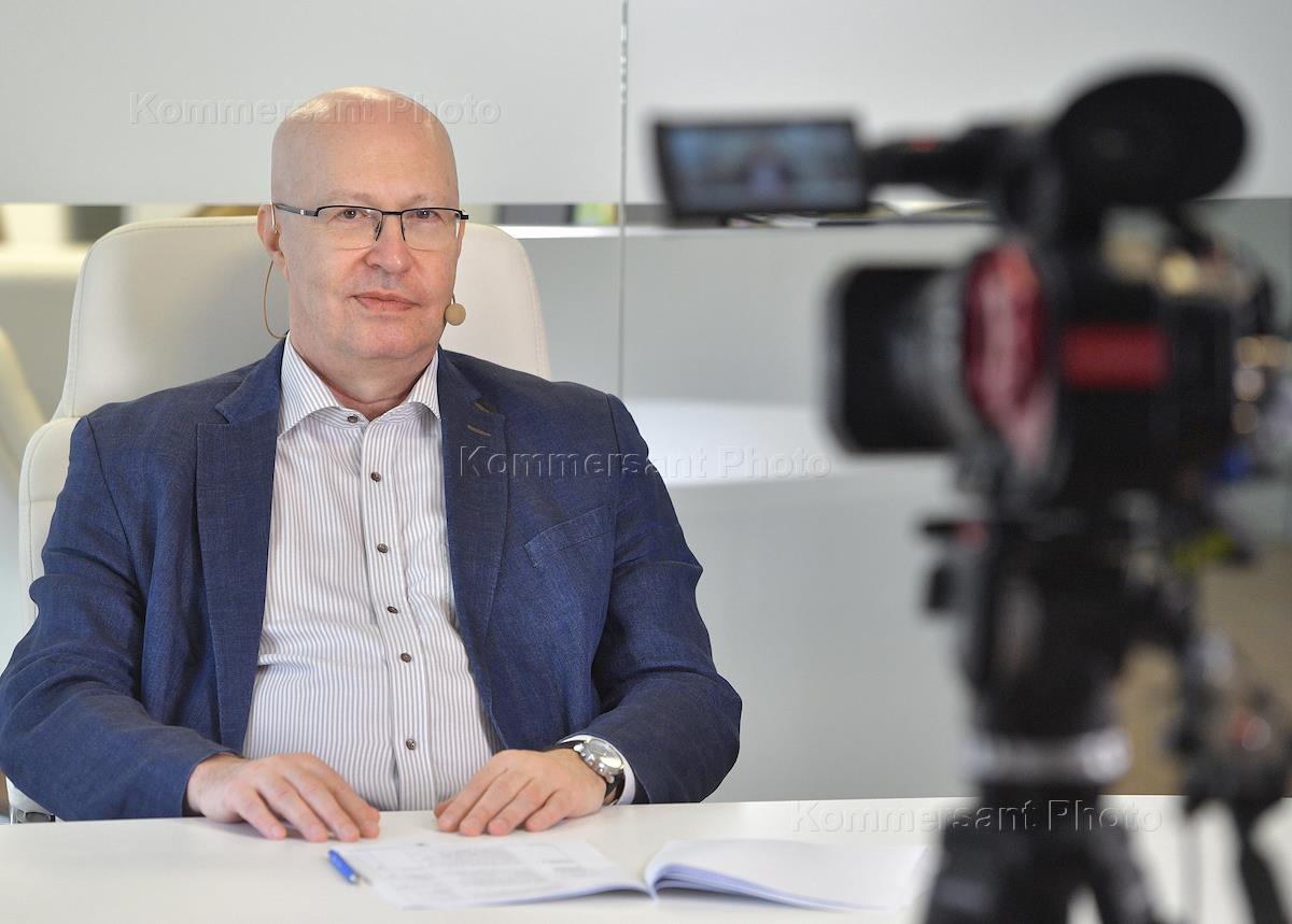 Режим самоизоляции из-за опасности распространения коронавирусной инфекции COVID-19. Жанровая фотография. Онлайн-митинги, приуроченные к 1 Мая. Онлайн-митинг "Хотим работать", организованный "Партией Роста" на YouTube-канале "Люди Роста". Заведующий кафедрой связей с общественностью МГИМО, профессор Валерий Соловей во время онлайн-митинга в офисе "Партии Роста".