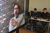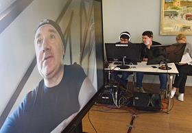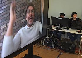 Режим самоизоляции из-за опасности распространения коронавирусной инфекции COVID-19. Жанровая фотография. Онлайн-митинги, приуроченные к 1 Мая. Музыкант, продюсер Сергей Шнуров (на экране) во время онлайн-митинга "Хотим работать", организованного "Партией Роста" на YouTube-канале "Люди Роста". Офис "Партии Роста" во время проведения онлайн-митинга.
