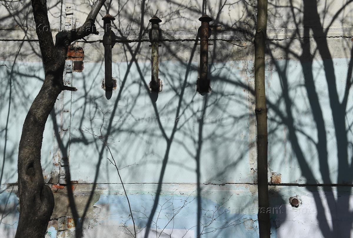 Жанровая фотография. Трубы на старой стене.