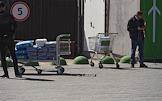 Москва во время режима самоизоляции из-за опасности распространения коронавирусной инфекции COVID-19. Жанровая фотография. Сотрудник магазина Leroy Merlin (Леруа Мерлен) с покупательскими тележками на парковке.