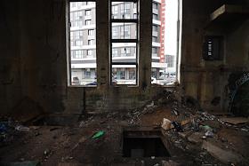 Виды Москвы. Жанровая фотография. Новостройки окне разрушенного дома.