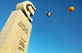 Волгоград во время режима самоизоляции из-за опасности распространения коронавирусной инфекции COVID-19. Жанровая фотография. Подготовка к акции, которая состоится 9 мая. Тестовый запуск трех аэростатов. Летящие аэростаты на фоне стелы "Сталинград был закатом немецко-фашисткой армии".