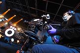 Москва во время режима самоизоляции из-за опасности распространения коронавирусной инфекции COVID-19. Жанровая фотография. Сольный концерт Вячеслава Бутусова в рамках проекта "Шоу ON!" на платформе Okko. Звукорежиссеры во время концерта.