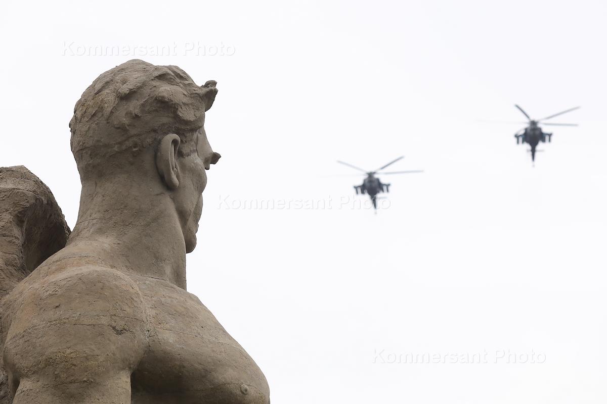 Празднование 75-ой годовщины Победы в Великой Отечественной войне. Воздушный парад боевой авиации Воздушно-космических сил (ВКС) России Южного военного округа над Мамаевым курганом.