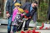 Санкт-Петербург во время режима самоизоляции из-за опасности распространения коронавирусной инфекции COVID-19. Празднование 75-ой годовщины Победы в Великой Отечественной войне. Люди возлагают цветы к памятнику "Защитникам Ленинградского неба" в парке Сосновка.