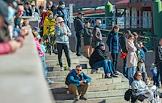 Празднование 75-й годовщины Победы в Великой Отечественной войне. Санкт-Петербург во время режима самоизоляции из-за опасности распространения коронавирусной инфекции COVID-19. Жанровая фотография. Люди наблюдают за воздушной частью военного парада.