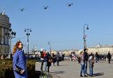 75-я годовщина Победы в Великой Отечественной войне. Санкт-Петербург во время режима самоизоляции из-за опасности распространения коронавирусной инфекции COVID-19. Жанровая фотография. Воздушная часть военного парада над акваторией реки Невы. Зрители на Сенатской площади.
