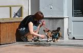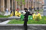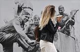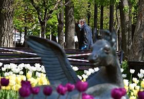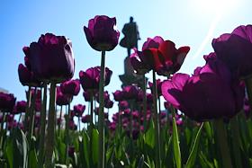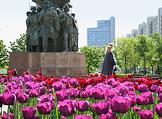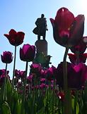 Genre photo. Tulips in the flower bed near the Lenin monument on Kalugzhskaya Square.